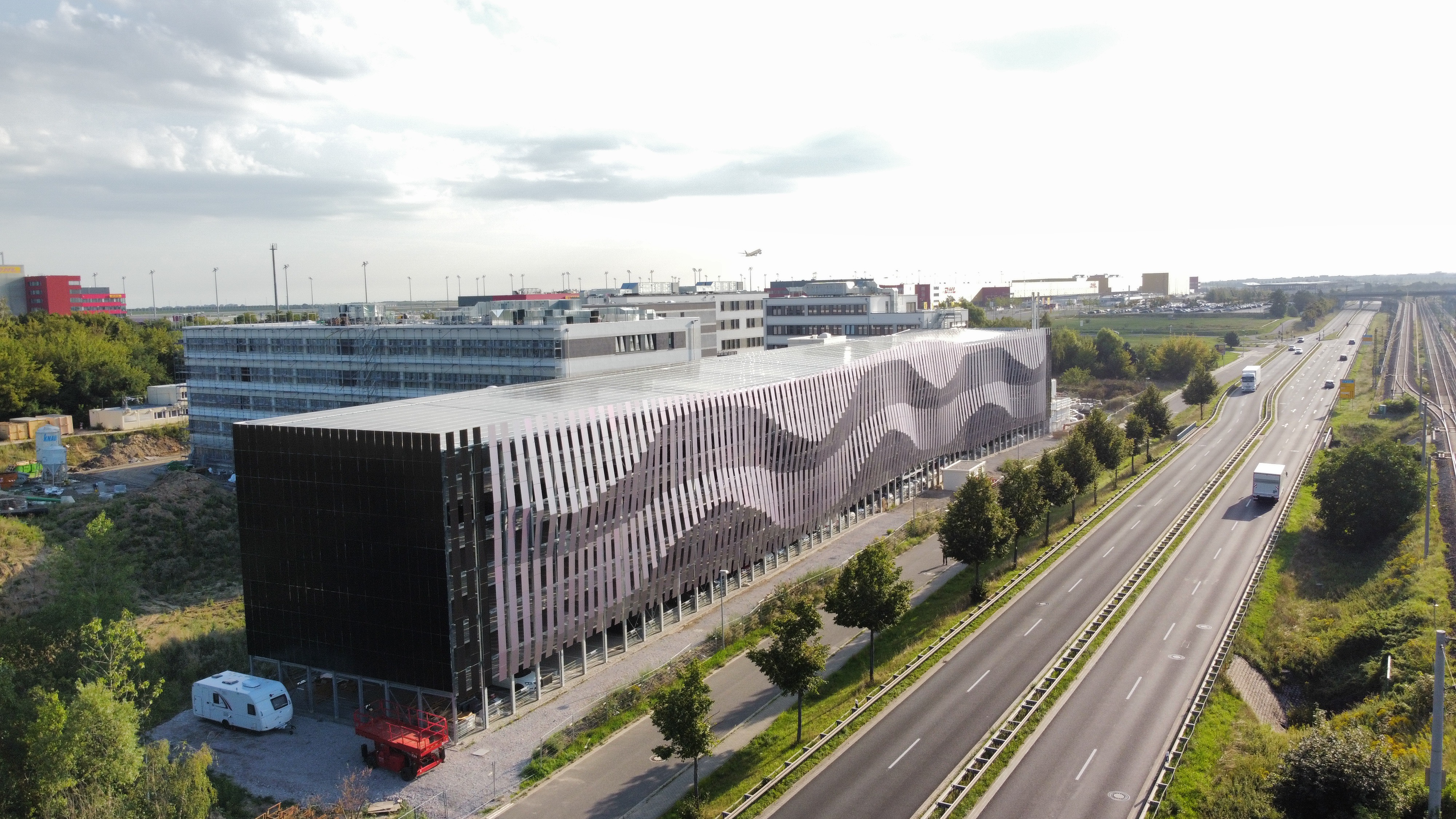 The DHL Parking House in Leipzig features a 2,500 m² Building-Integrated Photovoltaic (BIPV) façade, developed in collaboration with Leipziger Stadtbau and designed by Architektur Von Domaros. AVANCIS provided technical consultancy to optimize the façade for maximum energy yield while preserving its aesthetic integrity. The project highlights how computational design tools streamline the integration of photovoltaics into complex architectural forms.